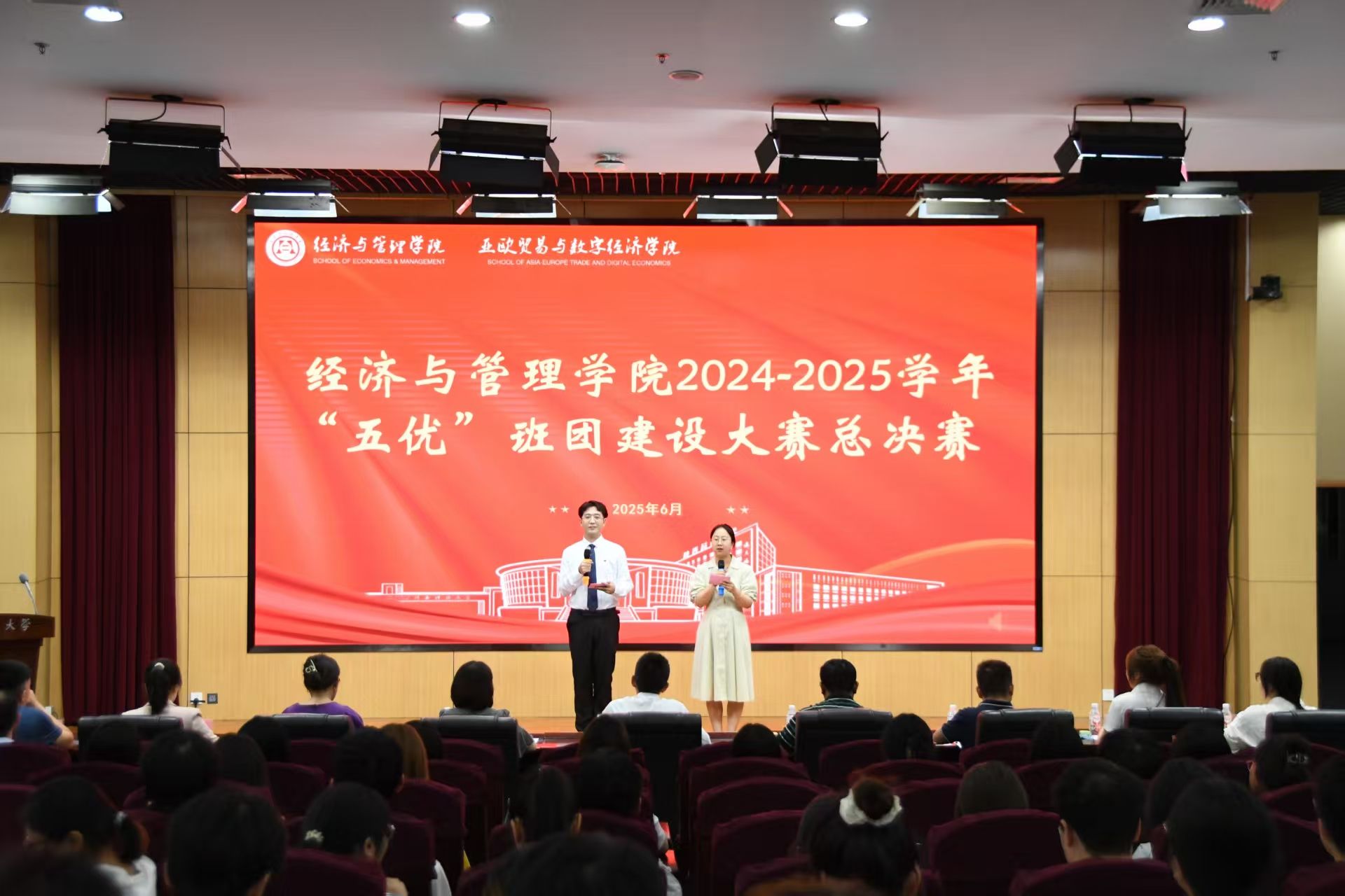 為全面落實(shí)習(xí)近平總書記關(guān)于青年工作的重要論述,強(qiáng)化新時(shí)代青年思想引領(lǐng),激發(fā)基層班團(tuán)組織創(chuàng)新活力,6月6日,經(jīng)濟(jì)與管理學(xué)院于圖書館報(bào)告廳舉辦2024-2025學(xué)年“五優(yōu)”班團(tuán)建設(shè)大賽總決賽。學(xué)工部、研工部、校團(tuán)委相關(guān)負(fù)責(zé)人和學(xué)院班子成員出席活動(dòng),2023級與2024級全體學(xué)生參加。