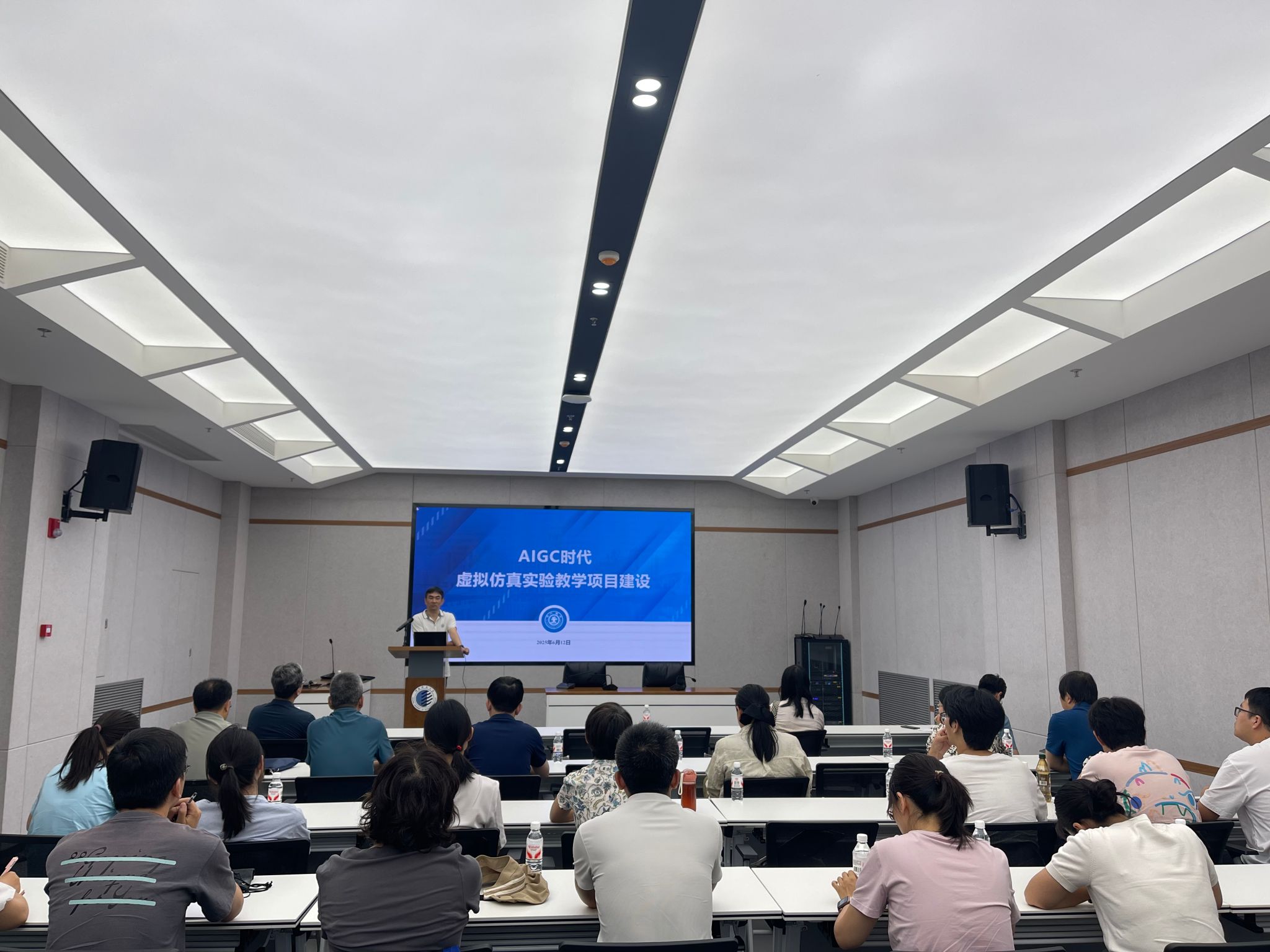 會(huì)上,張彥鵬以《AIGC時(shí)代虛擬仿真實(shí)驗(yàn)教學(xué)項(xiàng)目建設(shè)》為題,從國(guó)家政策解讀、申報(bào)書撰寫技巧、支撐材料整理規(guī)范等方面進(jìn)行針對(duì)性指導(dǎo),重點(diǎn)圍繞課程目標(biāo)設(shè)定、教學(xué)內(nèi)容設(shè)計(jì)、資源整合優(yōu)化以及特色亮點(diǎn)凝練進(jìn)行深入淺出的解讀;并結(jié)合知識(shí)圖譜構(gòu)建與AI技術(shù)融合的典型案例,展示虛擬仿真課程建設(shè)如何借助前沿技術(shù)實(shí)現(xiàn)創(chuàng)新突破,為與會(huì)教師開拓課程建設(shè)新思路?,F(xiàn)場(chǎng)互動(dòng)環(huán)節(jié),他就老師們關(guān)心的申報(bào)細(xì)節(jié)、信息技術(shù)融合等問題逐一進(jìn)行解答。