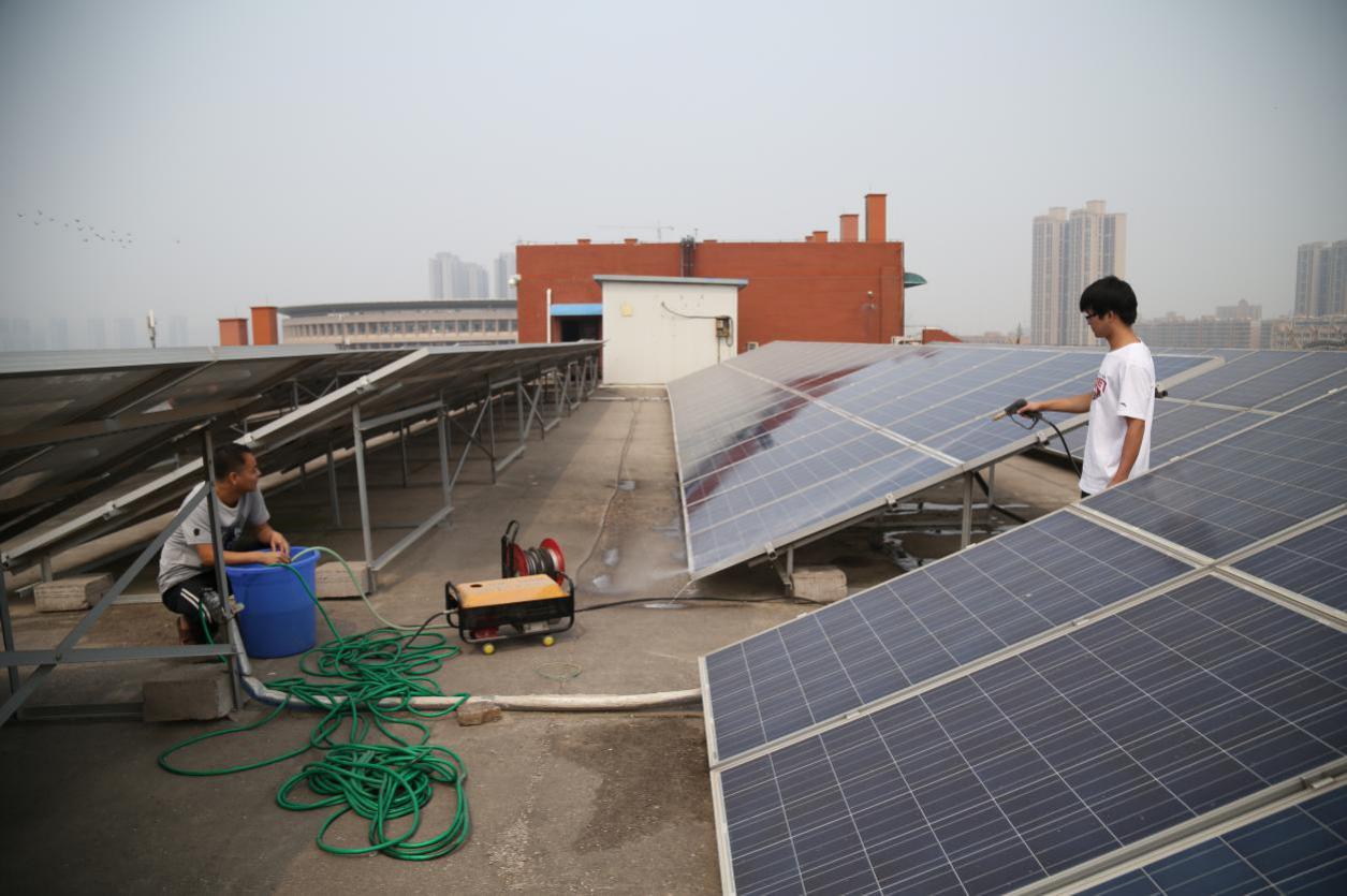 種馬剛說(shuō),清洗工作按常規(guī)是半年進(jìn)行兩次,但是為了保證太陽(yáng)能電池板能更好的工作,他們會(huì)根據(jù)天氣情況和臟污程度情況適當(dāng)加大清洗頻率。