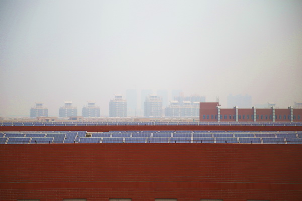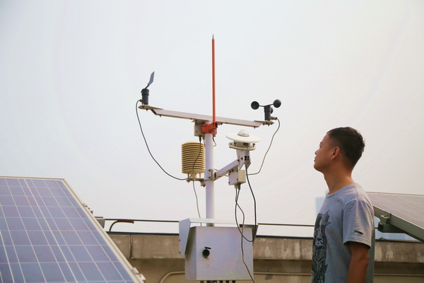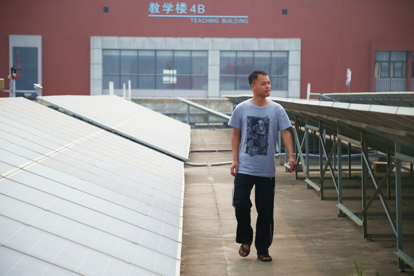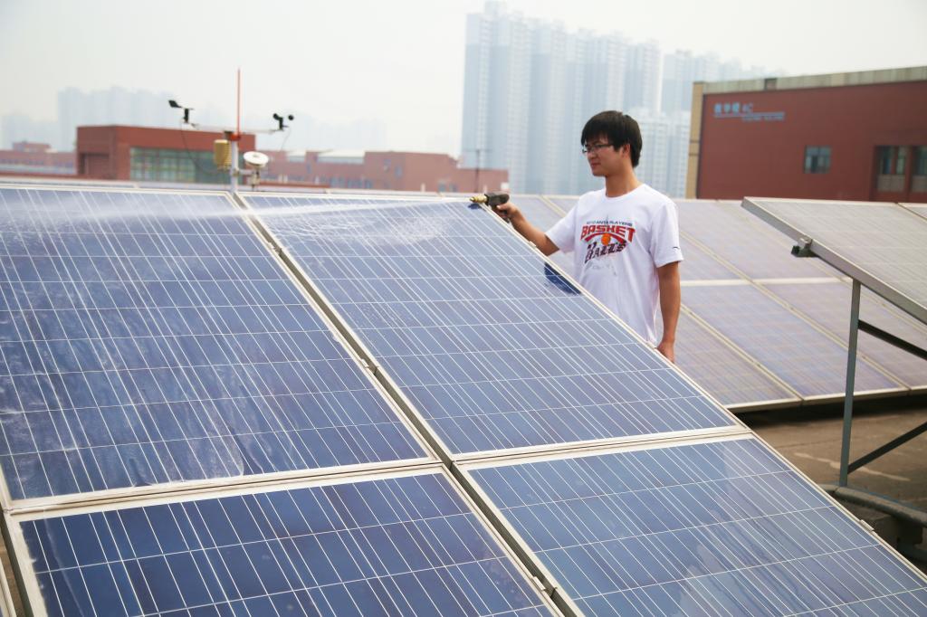 到了晌午太陽(yáng)正烈的時(shí)候,種馬剛卻 “習(xí)慣”性地走出監(jiān)控室,來(lái)到門(mén)外的天臺(tái)上,開(kāi)始對(duì)架設(shè)在此的一列列太陽(yáng)能電池板進(jìn)行巡視,查看是否有破損或者臟污。從一號(hào)教學(xué)樓A座到F座,1萬(wàn)多平方米的樓頂上共有3640片太陽(yáng)能電池板,即使不是每次都會(huì)全部走遍,但在艷陽(yáng)炙烤之下、周身環(huán)伺發(fā)燙的電池面板,這樣一趟走下來(lái)并不算輕松。