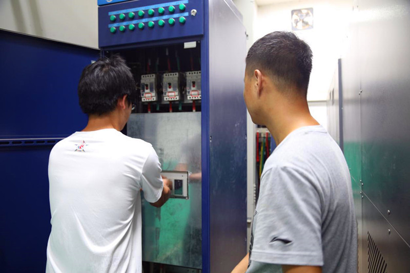 由于突然停電,系統(tǒng)為了保護(hù)電路采取了應(yīng)急斷電措施,種馬剛他們要重新閉合直流母線(xiàn)上的全部電源開(kāi)關(guān),重啟受影響的逆變器。據(jù)他們講,電站進(jìn)入正軌后基本上沒(méi)出什么大故障,可就在兩年前建站調(diào)試的時(shí)候,設(shè)備三天兩頭總出問(wèn)題,那時(shí)值班的師兄師姐們根本連坐下歇歇的時(shí)間都沒(méi)有,一直像個(gè)陀螺似的在頂樓和地下室來(lái)回轉(zhuǎn),真是“天上地下”的能把人腿跑斷。