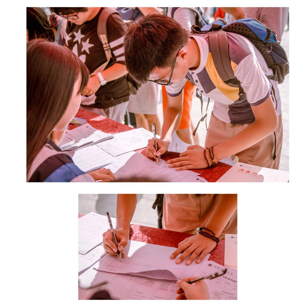 鄭晨燁一踏上迎新大道,穿著校服、佩戴新生接待工作證的迎新志愿者們就迎上前來,問他是哪個學院的,需不需要幫什么忙。在感謝了志愿者們之后,他由衷地感慨道:“太熱情了!”。隨后,走過被他形容為“像穿過兩道城墻”似的12個學院的新生及家長接待處帳篷,鄭晨燁很快就找到了自己的學院。
