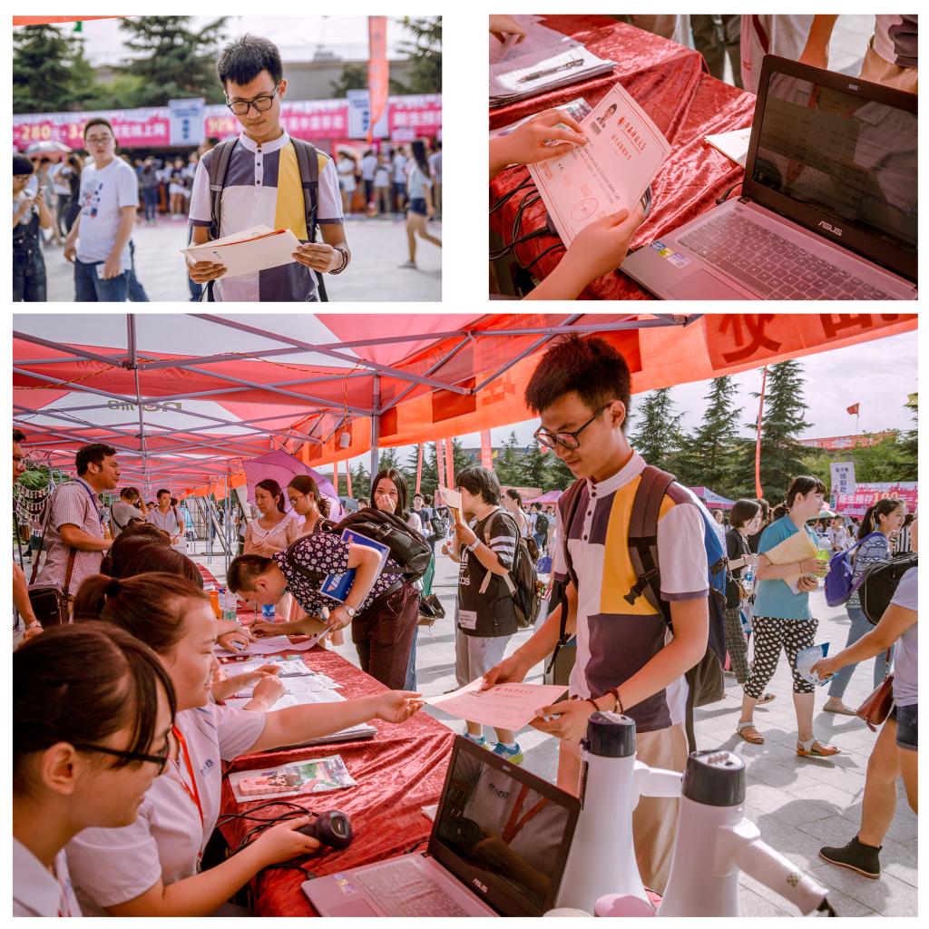 稍作休息后,鄭晨燁當天下午拿著錄取通知書,直奔管理學院新生接待帳篷。學長學姐們早已坐在辦公桌后,精神抖擻地做好了一切的接待準備。這邊一位學姐詢問了他的專業(yè)后,很快對他進行了報名資格審查,并為他在工商管理專業(yè)接待處注冊信息;那邊另一位學姐遞給他一份報名表,并指導他填寫;最后,貼心的學長為他準備好了“一卡通”和裝著入學指南的袋子,里面裝有一本《大學導航》、一份為新生解惑的《科奕》報紙、一張科大的地圖和其他的一些東西。