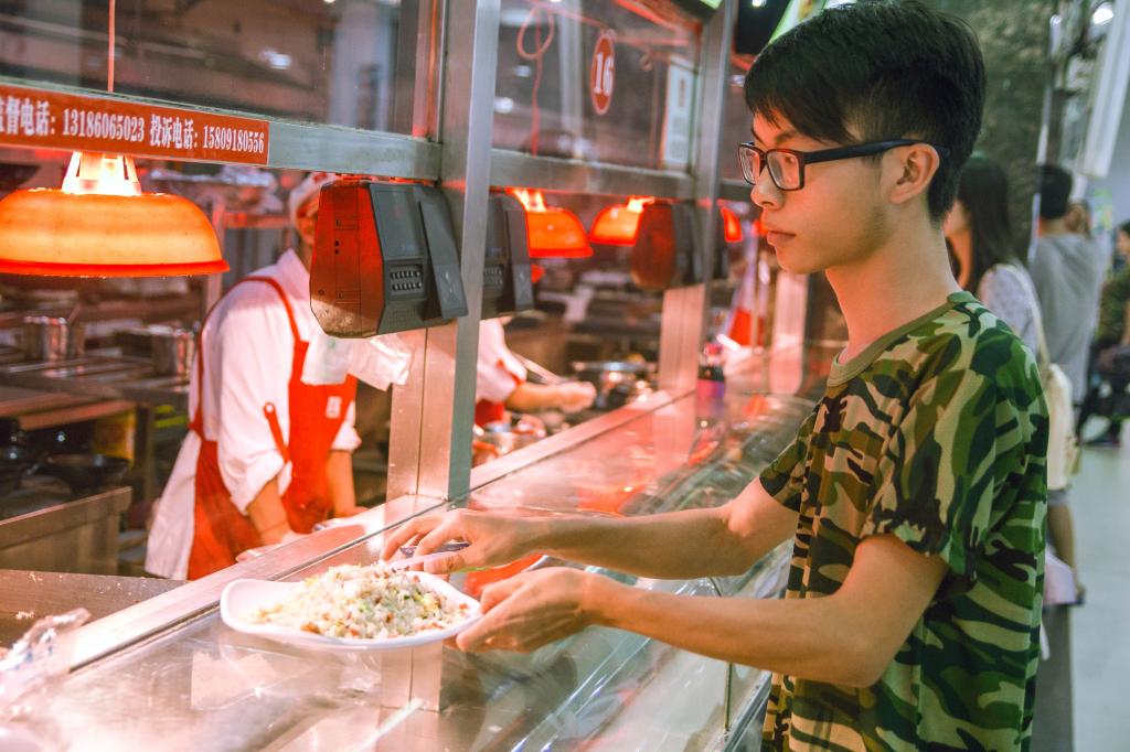 一大清早,來到食堂。一些新生正在井井有序地購買早餐。軍訓的強度大,如果早飯不吃好的話肯定是沒有辦法好好訓練的。
