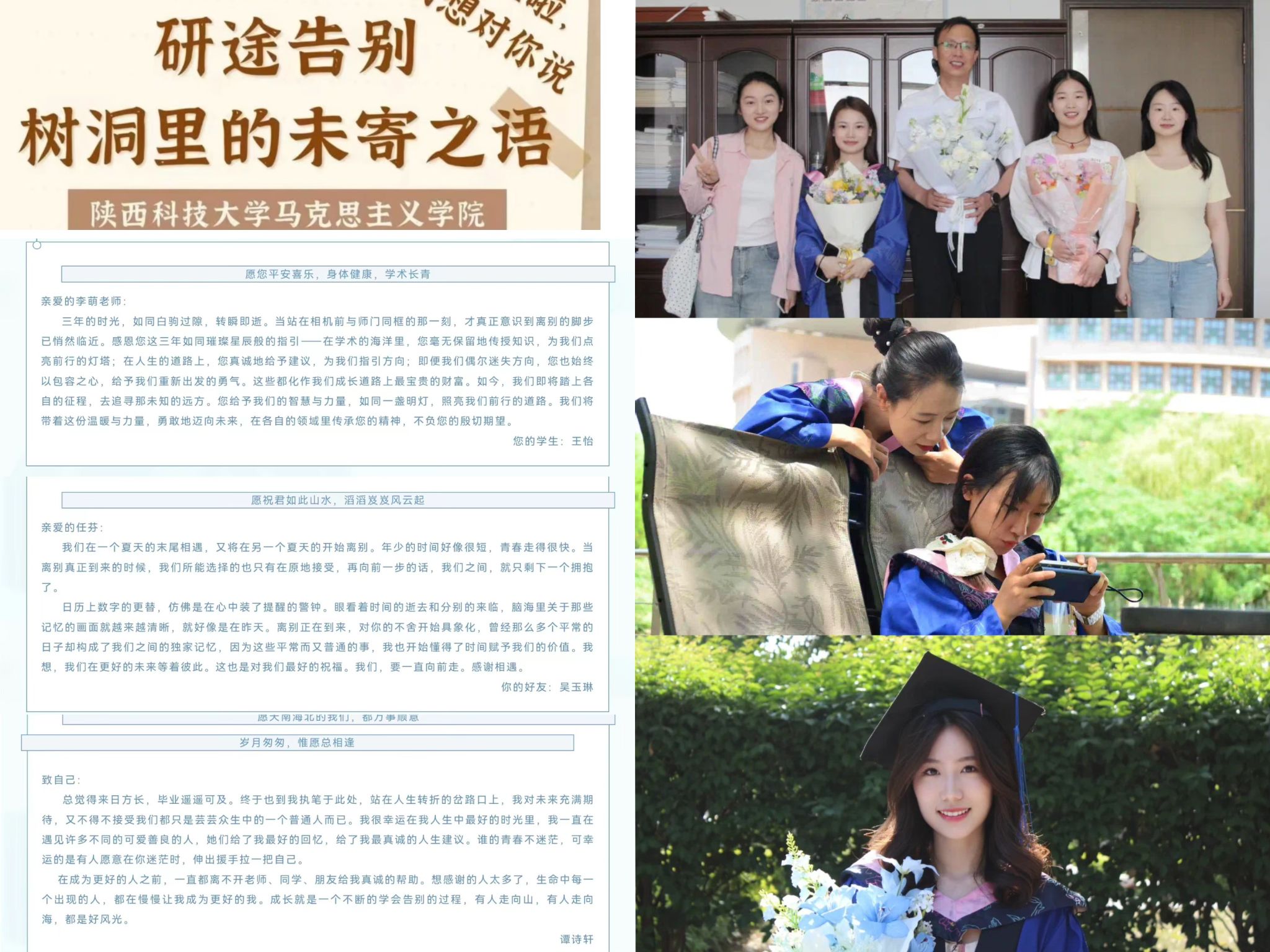 畢業(yè)的序章里總有一些未說盡的情愫藏在抽屜深處,學院開展“告別研途”樹洞征集活動,為2025屆畢業(yè)生搭建情感表達平臺。畢業(yè)生們通過匿名或署名方式,向導師、同窗或未來的自己投遞"心靈信箋",將那些藏在心底的感恩、期許與祝?;魑淖?。一封封真摯的書信,承載著畢業(yè)生們最深沉的情感。