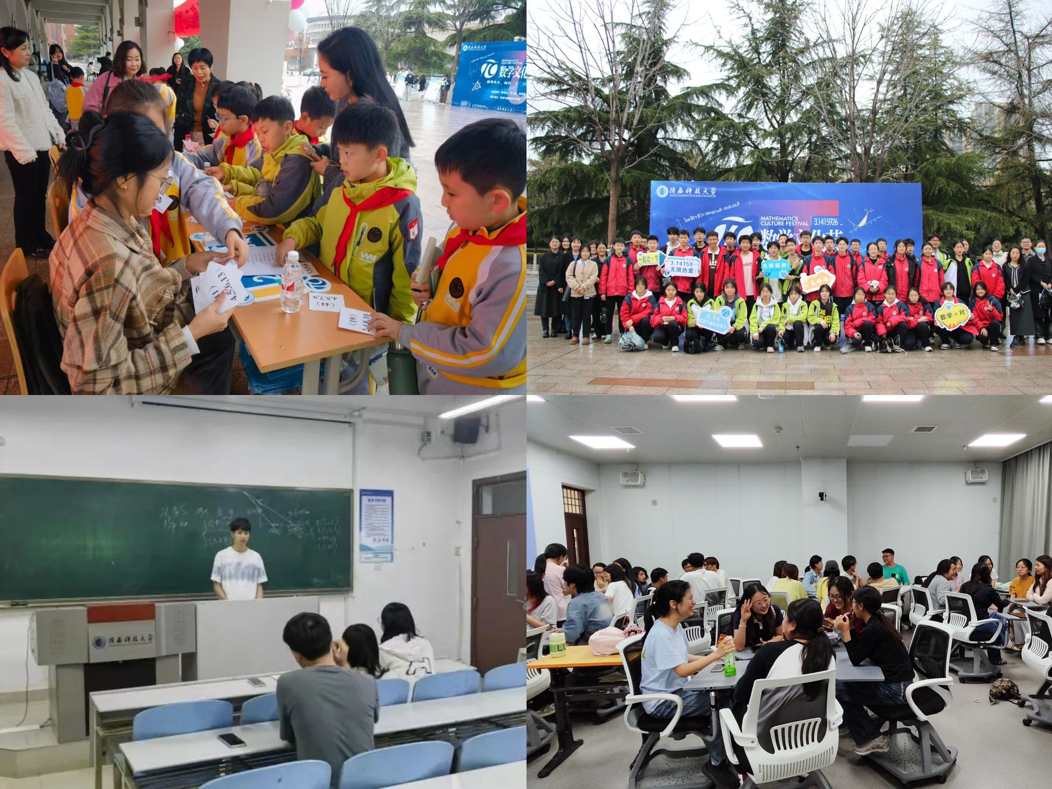 “數(shù)”趣相伴,弘揚數(shù)學(xué)文化,感悟數(shù)學(xué)魅力。以國際數(shù)學(xué)日為契機,舉辦“圓周率日,相約‘π’Day”主題活動,設(shè)置數(shù)學(xué)文化宣講、數(shù)學(xué)趣味游戲體驗、人工智能體驗等三大區(qū)域,舉辦一系列兼具專業(yè)性、創(chuàng)意性、挑戰(zhàn)性的趣味數(shù)學(xué)文化活動,未央?yún)^(qū)第一學(xué)校、西航三校、鳳凰城小學(xué)、未央路小學(xué)等十余所中小學(xué)師生代表600余人前來參加。此外,舉辦“數(shù)學(xué)老師我來當(dāng)”、“尋找生活中的數(shù)學(xué)”、“數(shù)影同行”觀影活動等7場,帶領(lǐng)學(xué)生在沉浸式體驗中學(xué)習(xí)數(shù)學(xué)、感悟數(shù)學(xué),進(jìn)一步堅定專業(yè)自信、明確發(fā)展方向。