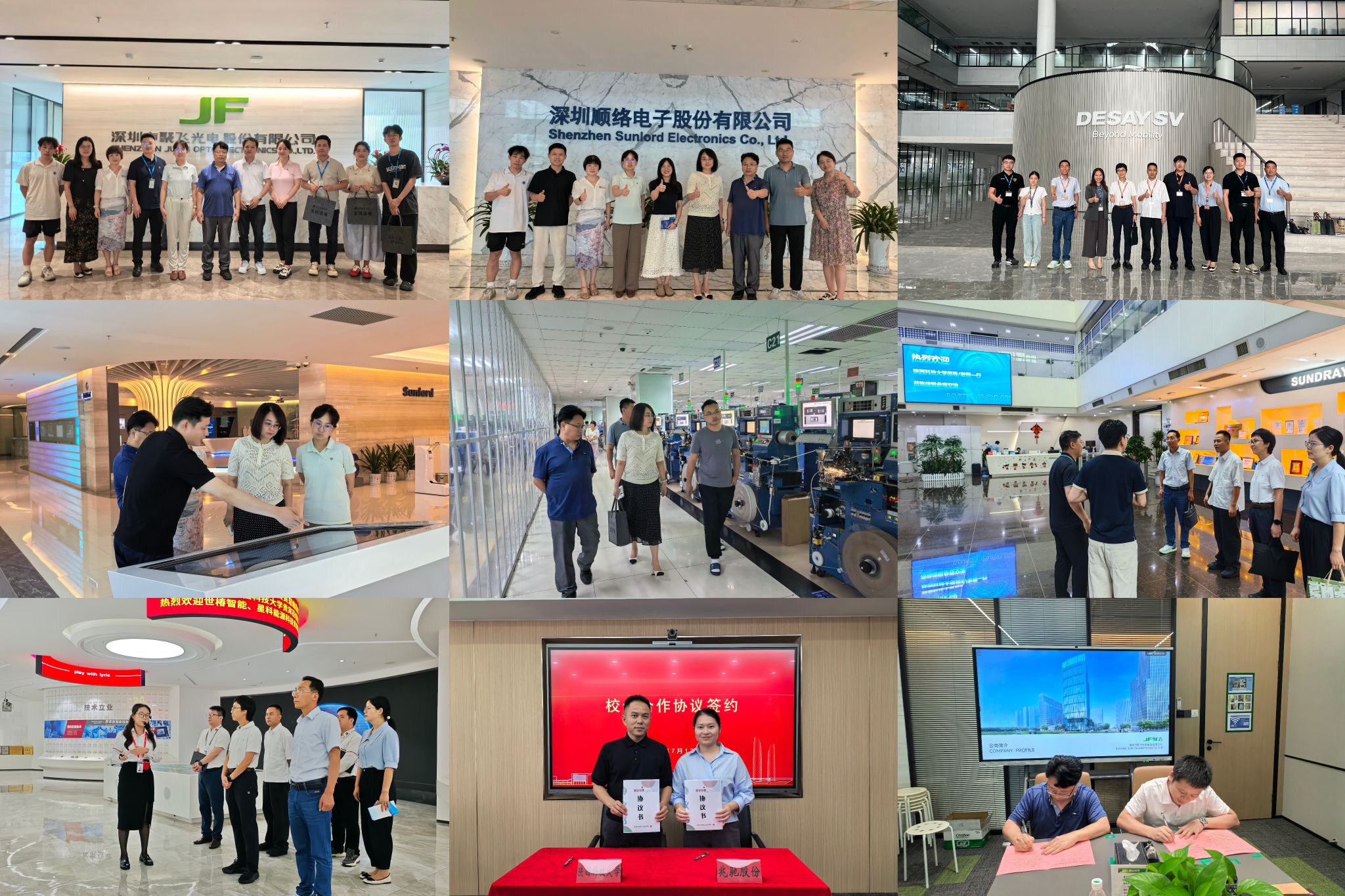 在拓展校企合作與產(chǎn)業(yè)調(diào)研方面,團隊圍繞新型顯示技術(shù)、集成電路、半導(dǎo)體、汽車電子等領(lǐng)域,實地考察了包括深圳市兆馳股份有限公司、深圳和美精藝半導(dǎo)體科技股份有限公司、勝科納米(深圳)有限公司、深圳順絡(luò)電子股份有限公司、深圳聚飛光電股份有限公司、德賽西威汽車電子股份有限公司、廣東利元亨智能裝備股份有限公司、信銳網(wǎng)科技術(shù)有限公司、中南國際科技發(fā)展(深圳)有限公司、深圳市圖興科技有限公司等16家企業(yè)。通過參觀企業(yè)展廳、生產(chǎn)線,聽取企業(yè)介紹,團隊深入了解了行業(yè)發(fā)展趨勢、技術(shù)前沿動態(tài)及具體崗位能力需求。校企雙方圍繞提升人才培養(yǎng)精準(zhǔn)度,就課程體系優(yōu)化、實踐教學(xué)強化、實習(xí)就業(yè)基地共建、定向崗位開拓等議題展開了務(wù)實討論,旨在將產(chǎn)業(yè)需求融入培養(yǎng)方案,提升學(xué)生就業(yè)競爭力。