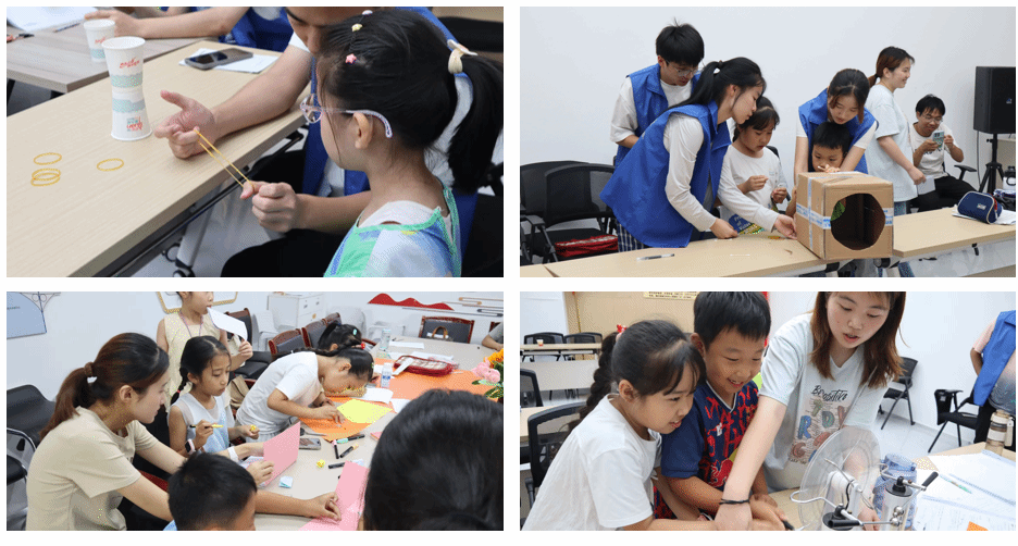 “做中學(xué)”環(huán)節(jié),實踐團將科學(xué)知識融入趣味實驗,如“空氣炮”“紙杯飛機”“走馬燈”等,吸引孩子們注意力,講解科學(xué)原理,讓科學(xué)變得生動。同時開設(shè)英語、閱讀、手工等課程,助力孩子全面發(fā)展。