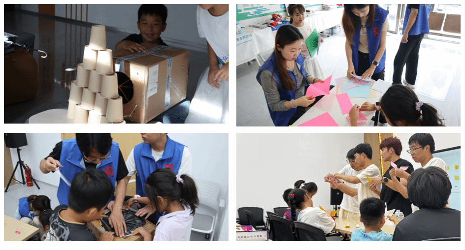 “創(chuàng)中學(xué)”環(huán)節(jié),實踐團組織學(xué)生以手工實驗為基礎(chǔ),自主設(shè)計比賽。孩子們分組合作,從討論設(shè)計到動手制作,利用身邊材料改進實驗作品,如為“空氣炮”加噴嘴、“紙杯飛機”貼尾翼等,提升動手能力和創(chuàng)新思維,體會團隊合作力量。