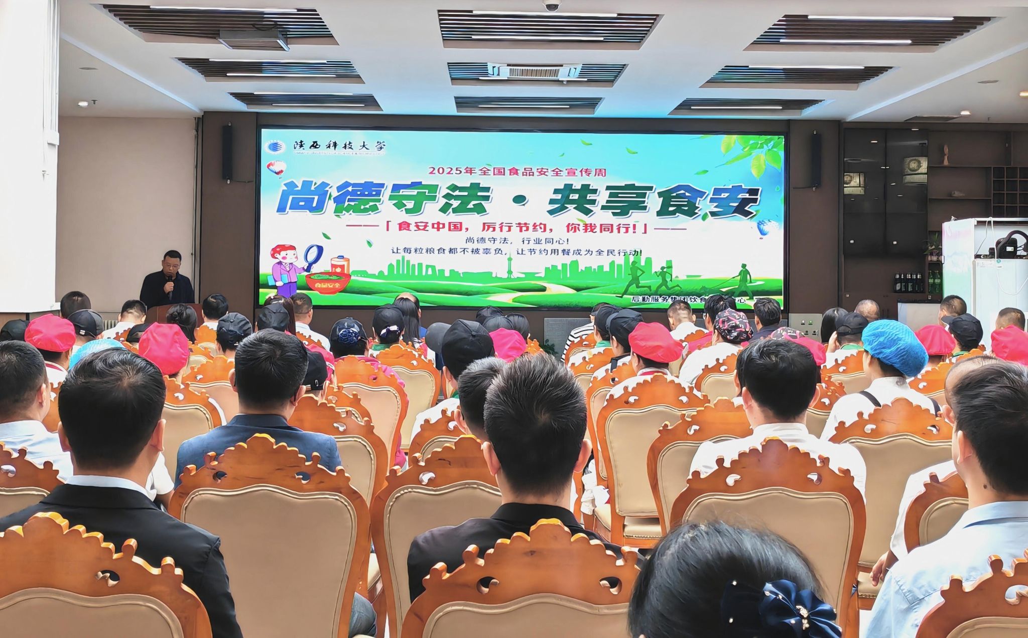 為進一步提升師生食品安全意識,加強食品安全宣傳力度,積極響應全國食品安全宣傳周號召,9月17日上午,陜西科技大學2025年食品安全宣傳周啟動儀式在馨園餐廳舉行。本次活動以“尚德守法·共享食安”為主題,旨在營造共建共治共享食品安全的良好氛圍。