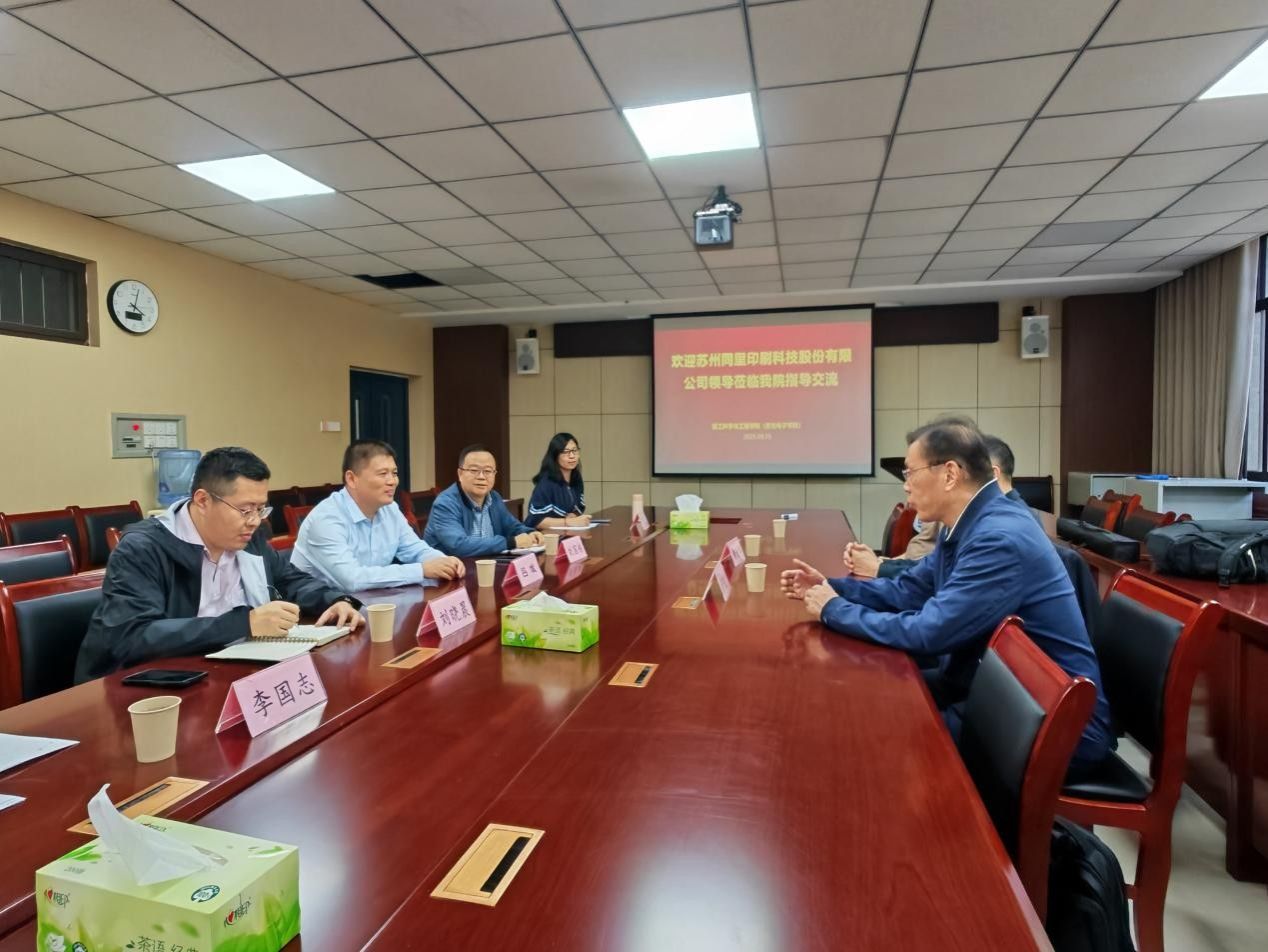 9月25日蘇州同里印刷科技股份有限公司董事長嚴建中一行到輕工科學(xué)與工程學(xué)院就智能印刷包裝材料開發(fā)和印包企業(yè)高層次領(lǐng)軍人才的培養(yǎng)等問題進行調(diào)研交流。院長呂斌及新媒體系三位副系主任參加本次座談,會議由副院長劉國棟主持。