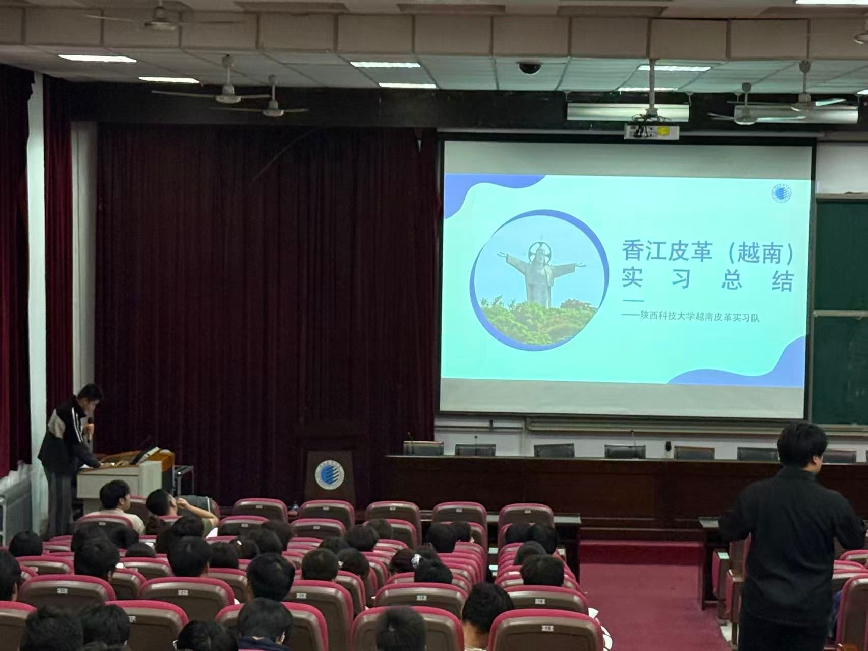 9月24日,陜西科技大學(xué)皮革(越南)實習(xí)隊在校內(nèi)舉辦實習(xí)總結(jié)分享會,給予學(xué)院大一新生交流分享赴香江集團(tuán)(越南)有限公司的實習(xí)成果。