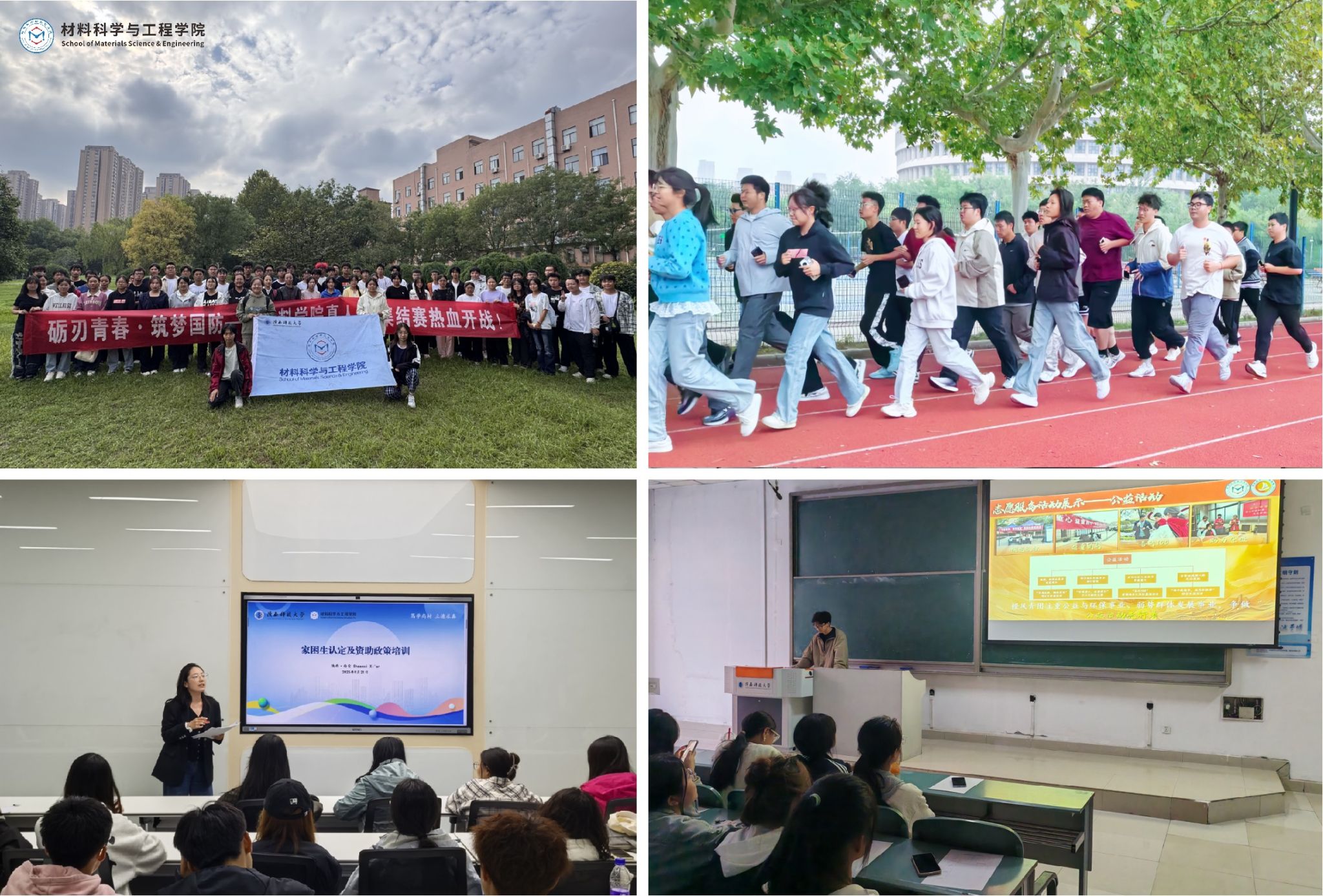 促進五育并舉,拓展多元成長平臺,賦能學生發(fā)展。學院高度重視學生多元發(fā)展,打造“體·閱·學”三維浸潤計劃,以“晨練暮學行動”為抓手,提升新生對于閱讀和體育的熱情,營造優(yōu)良學風氛圍;軍訓期間開展“礪刃青春?材子筑夢”校園真人CS大賽,在實踐中體悟國防意義,為破解校園多元互動難題提供了趣味載體;開展競賽科普、職業(yè)生涯規(guī)劃、資助政策宣講等專題講座,加強新生對科創(chuàng)競賽的認識,解答新生個人規(guī)劃、考研與就業(yè)形勢、資助政策等方面問題;舉辦新生辯論賽、校歌傳唱選拔賽、學生組織宣講會等,提高新生對參與課外活動的熱情,鍛煉同學們的邏輯思維與書面表達能力,增強同學們身體素質(zhì)與班級凝聚力,極大程度上豐富了同學們的課余生活。