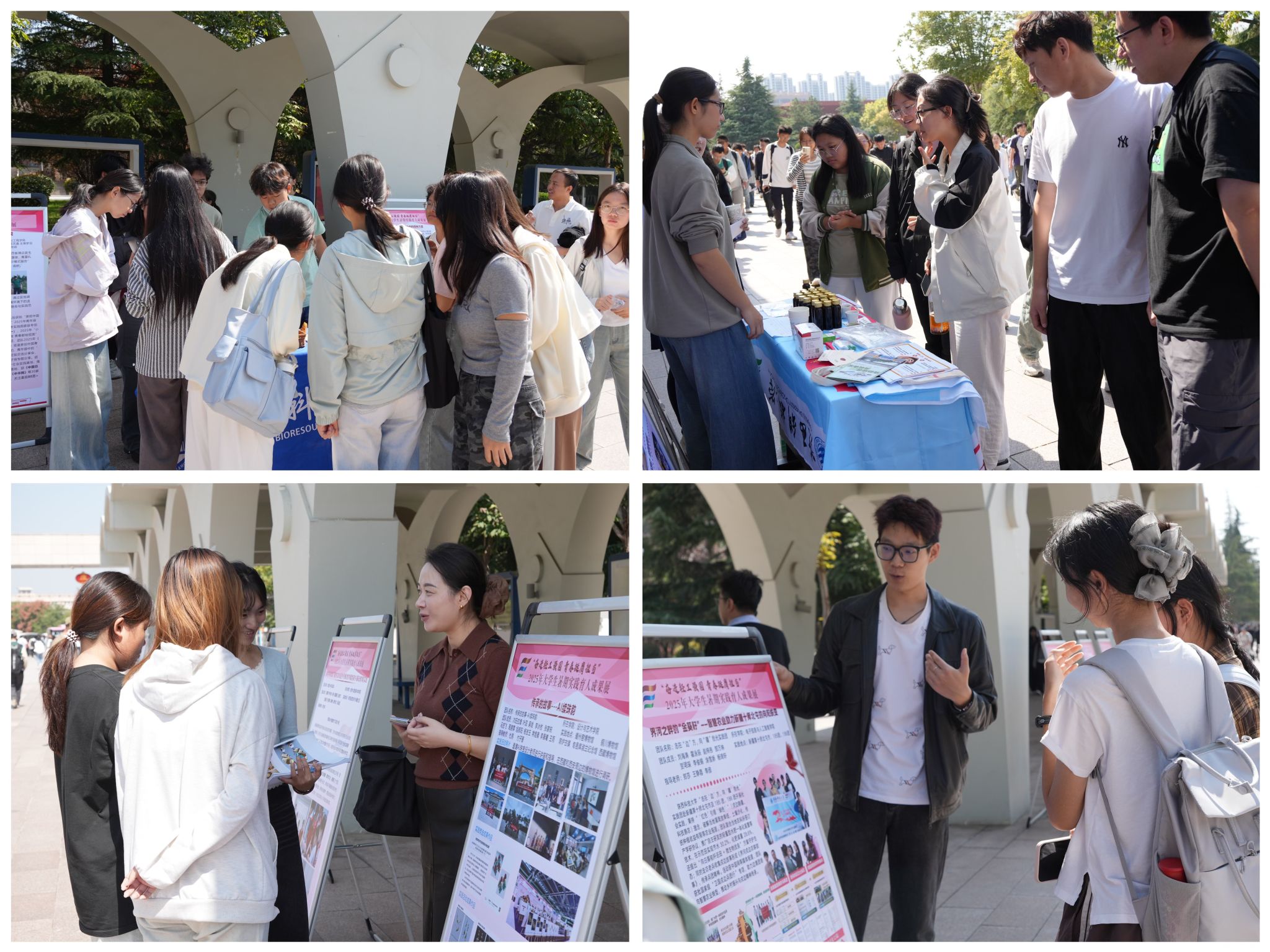 各實(shí)踐團(tuán)隊(duì)通過(guò)圖文展板、現(xiàn)場(chǎng)講解等多種形式,生動(dòng)講述了他們?cè)趯?shí)踐中的創(chuàng)新探索與豐碩成果。從智能農(nóng)機(jī)到非遺數(shù)字文創(chuàng),從紅色紀(jì)錄片到生態(tài)治理方案,每一項(xiàng)成果都是同學(xué)們“把論文寫(xiě)在祖國(guó)大地上”的初心與擔(dān)當(dāng)?shù)孽r活例證。
