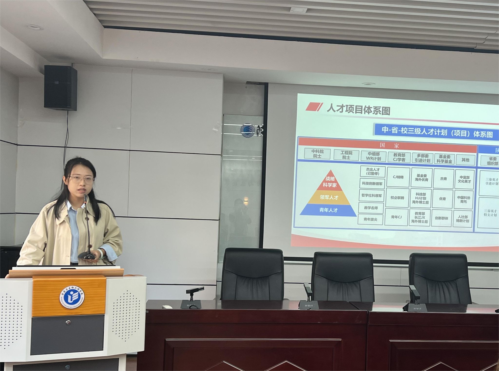 黨梓睿詳細介紹了國家級、省級各類人才項目的申報政策,細致解讀了各類人才項目的評審流程及與教師職業(yè)發(fā)展的銜接路徑,為學院青年教師規(guī)劃長遠學術生涯、實現(xiàn)職業(yè)階梯式發(fā)展指明了方向。
