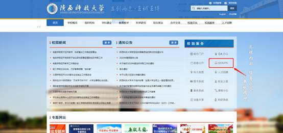 通過(guò)我校校園網(wǎng)主頁(yè)http://www.ujnaxxp.cn,下拉至右下方校園服務(wù),點(diǎn)擊WebVPN圖標(biāo)即可。