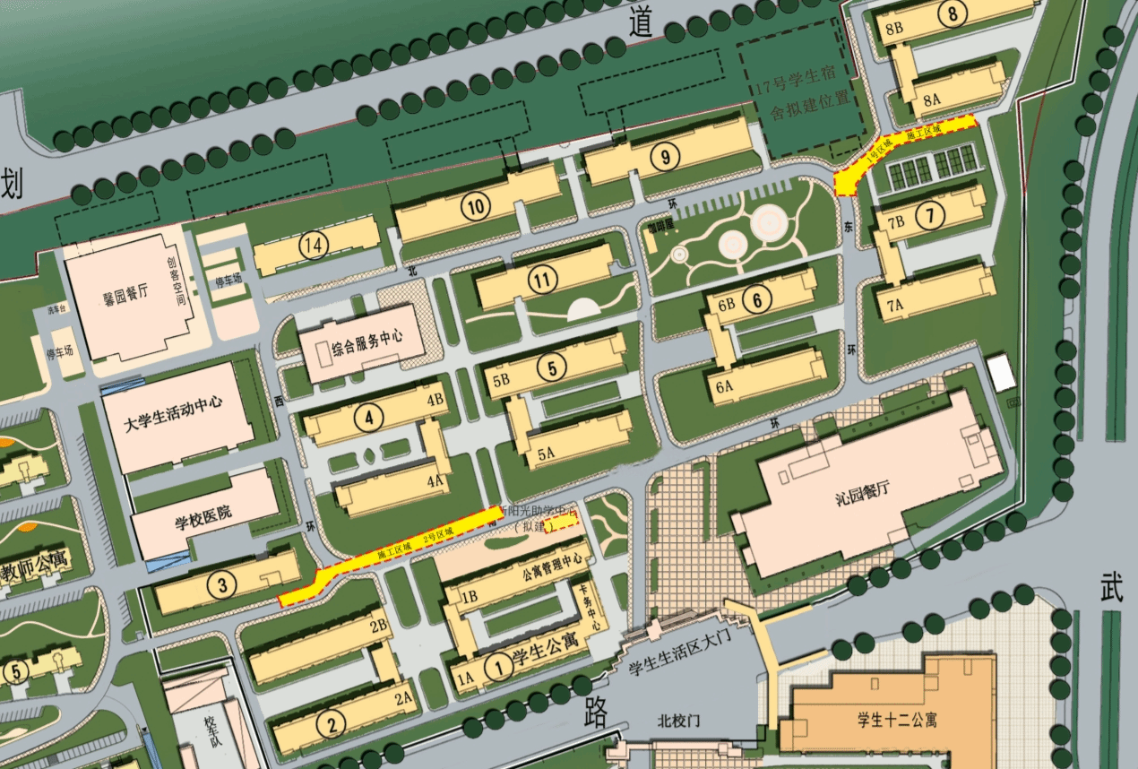 關(guān)于對學(xué)生生活區(qū)東環(huán)道及南環(huán)道區(qū)域封閉施工的通知