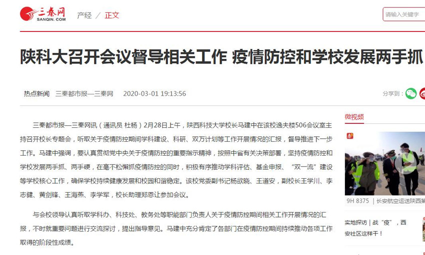 三秦網(wǎng):陜科大召開會議督導(dǎo)相關(guān)工作 疫情防控和學(xué)校發(fā)展兩手抓