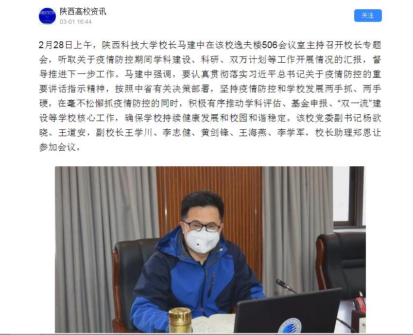 澎湃新聞客戶端:陜科大召開會議督導(dǎo)相關(guān)工作 疫情防控和學(xué)校發(fā)展兩手抓