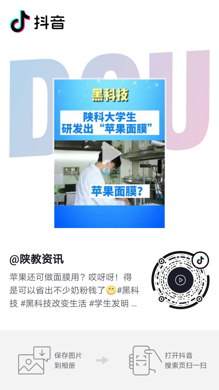 陜教資訊抖音號(hào):陜科大學(xué)生研發(fā)出“蘋果面膜”