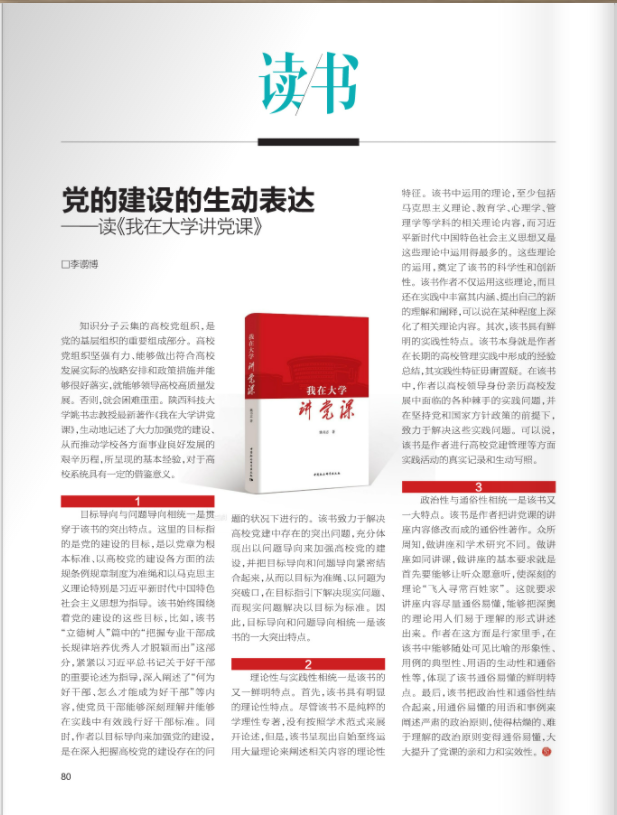 當(dāng)代陜西:黨的建設(shè)的生動表達(dá)——專家學(xué)者評我校黨委書記姚書志專著《我在大學(xué)講黨課》
