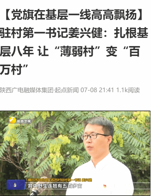 學(xué)習(xí)強(qiáng)國(guó)陜西學(xué)習(xí)平臺(tái):陜西銅川市印臺(tái)區(qū)王石凹村駐村第一書記姜興?。涸鶎影四?讓“薄弱村”變“百萬(wàn)村”