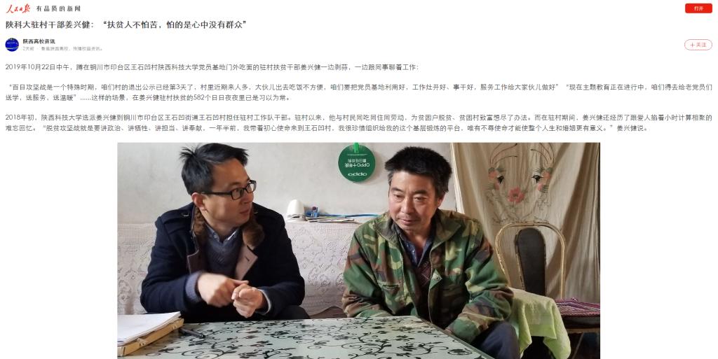 人民日報App:陜科大駐村干部姜興?。骸胺鲐毴瞬慌驴啵碌氖切闹袥]有群眾”