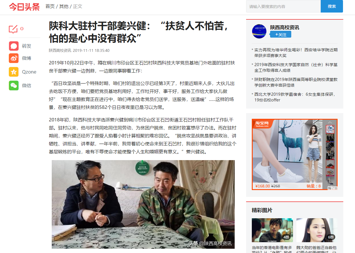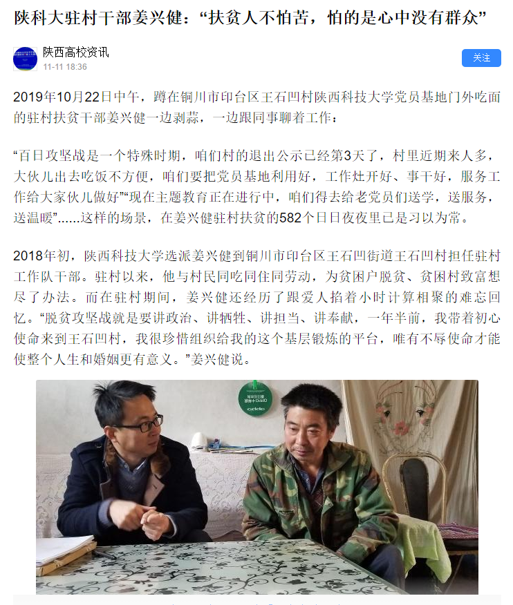 今日頭條:陜科大駐村干部姜興健:“扶貧人不怕苦,怕的是心中沒有群眾”