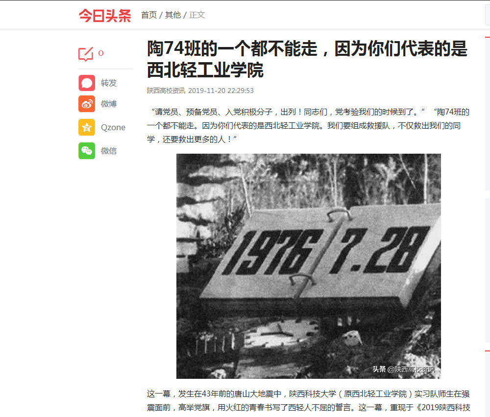 今日頭條APP報(bào)道:陶74班的一個(gè)都不能走, 因?yàn)槟銈兇淼氖俏鞅陛p工業(yè)學(xué)院!