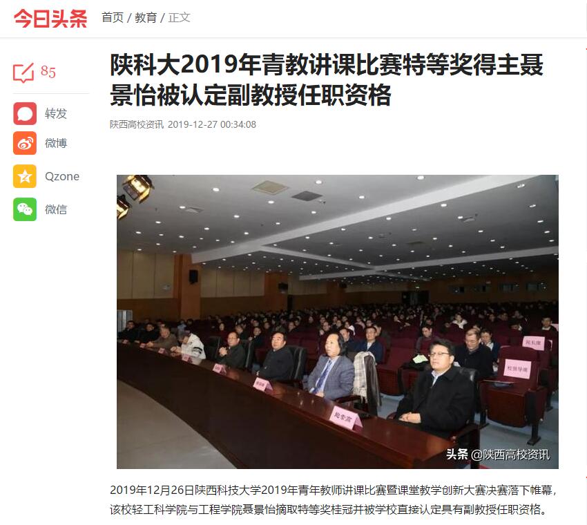 今日頭條APP:陜科大2019年青教講課比賽特等獎(jiǎng)得主聶景怡被認(rèn)定副教授任職資格