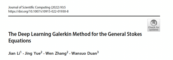 [2] Jian Li, Jing Yue, Wen Zhang, Wansuo Duan, The Deep Learning Galerkin Method for the General Stokes Equations.Journal of Scientific Computing, 93(2022): 1-20.