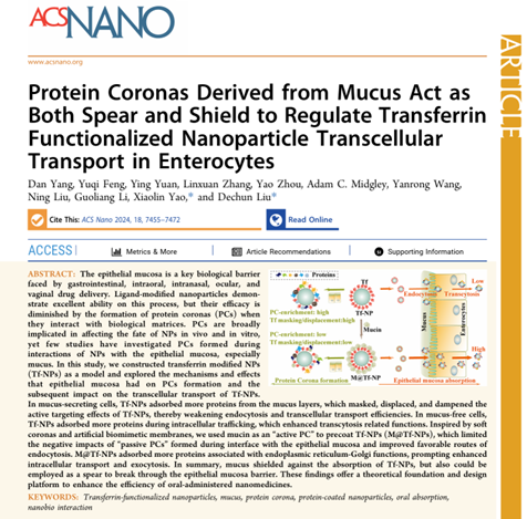 Protein Coronas Derived from Mucus Act as Both Spear and Shield to Regulate Transferrin Functionalized Nanoparticle Transcellular Transport in Enterocytes.