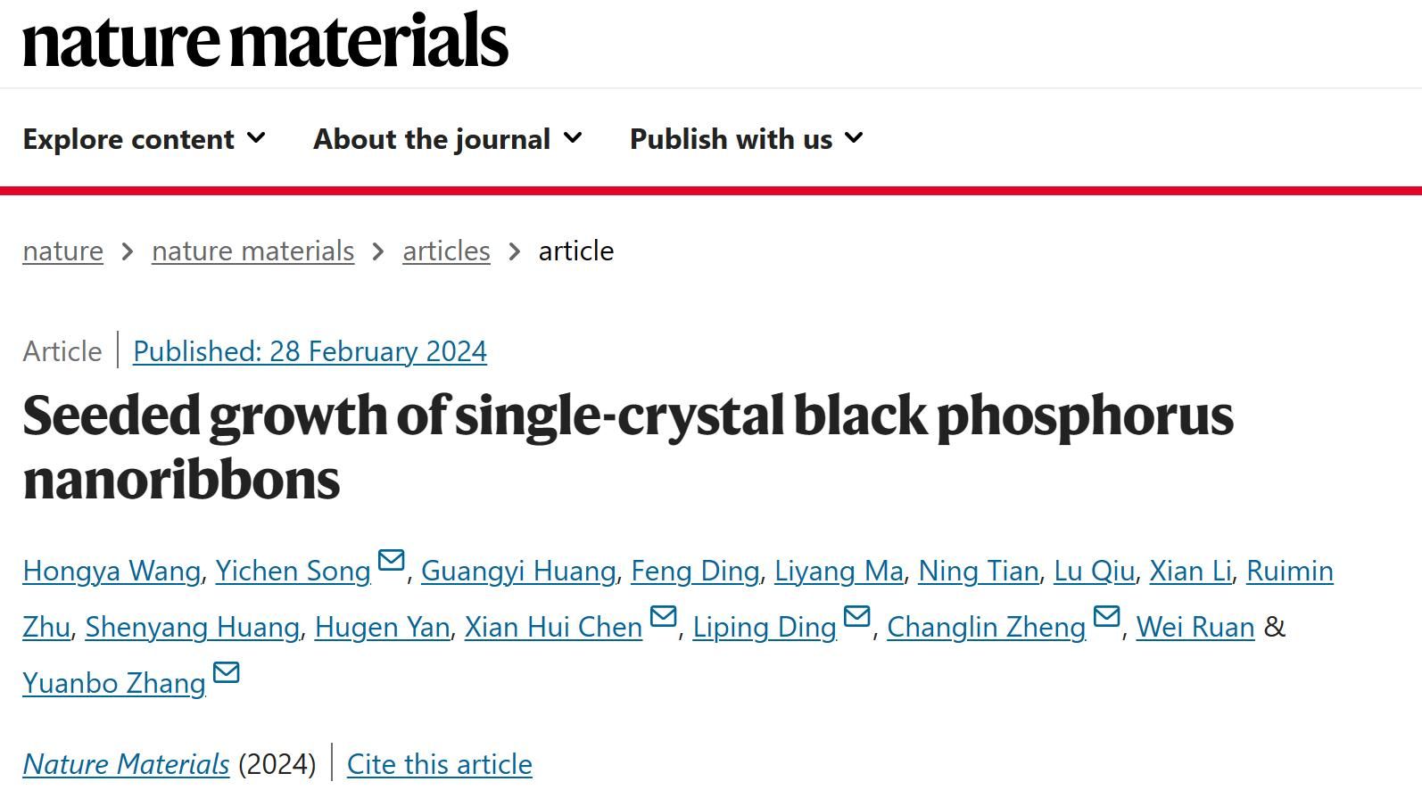近期,電子信息與人工智能學(xué)院新型顯示及半導(dǎo)體材料與器件團(tuán)隊(duì)丁利蘋副教授在二維半導(dǎo)體材料領(lǐng)域取得重要進(jìn)展,相關(guān)成果以“Seeded growth of single-crystal black phosphorus nanoribbons”為題,被發(fā)表在Nature子刊《Nature Materials》。丁利蘋副教授為論文共同通訊作者,我校為共同通訊單位。該成果的發(fā)表體現(xiàn)了我校在二維半導(dǎo)體領(lǐng)域的影響力。