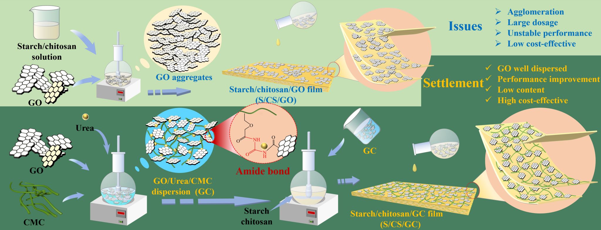本論文的創(chuàng)新之處在于采用解決了超低含量氧化石墨烯(0.01wt%)在羧甲基纖維素(CMC)/殼聚糖復(fù)合膜中難以均勻單層分散的問題,該復(fù)合膜的拉伸性能比對(duì)照組提高了91.7%,水蒸氣透氣性(WVP)低,耐水性好,在50%可見光下紫外線屏蔽效果保持在92%。薄膜由溢出抗菌模式轉(zhuǎn)變?yōu)榻佑|抗菌模式,對(duì)大腸桿菌和金黃色葡萄球菌的抑菌能力分別比對(duì)照組提高23.8%和25.6%,可廣泛應(yīng)用于食品和藥品包裝領(lǐng)域。