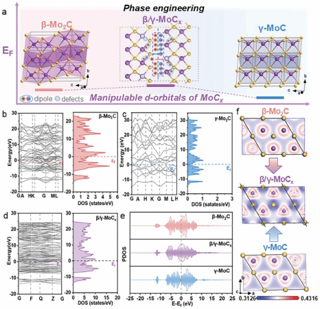 圖1. 雙相 β/γ-MoCx@CN 的組裝及理論計算