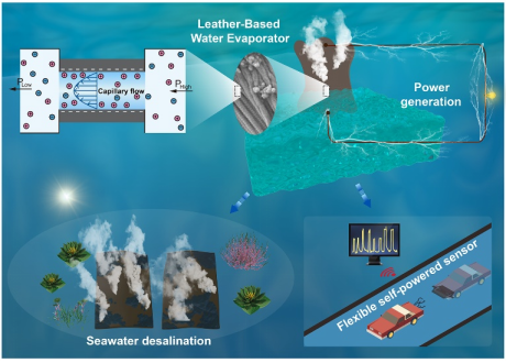 9. 團(tuán)隊(duì)官小玉副教授等人受金屬離子先充分滲透然后與水凝膠的功能基團(tuán)有效結(jié)合的皮革礦物鞣制機(jī)理啟發(fā),成功構(gòu)建了一系列金屬離子配位水凝膠,與傳統(tǒng)的制備方法相比,其力學(xué)性能有顯著提高,強(qiáng)韌性金屬離子配位水凝膠在柔性電子地板、關(guān)節(jié)運(yùn)動(dòng)、扁平足矯正等領(lǐng)域具有潛在的應(yīng)用前景。相關(guān)研究成果發(fā)表在Advanced Functional Materials, 2024, 2313633,Chemical Engineering Journal, 2024, 489, 151353,ACS Applied Materials & Interfaces, 2024, 16, 5168期刊上。此外,官小玉副教授等人還通過(guò)傳統(tǒng)的鞣制工藝,成功構(gòu)建了具有眾多納米/微通道、豐富的含氧官能團(tuán)、優(yōu)異的物理化學(xué)穩(wěn)定性、柔韌性和生物相容性的天然皮革基蒸發(fā)器,有望從水蒸發(fā)中獲取可持續(xù)的綠色能源,在發(fā)電、海水淡化和柔性自供電傳感地板等領(lǐng)域具有廣泛的應(yīng)用前景。相關(guān)研究成果發(fā)表在Journal of Energy Chemistry, 2024, 96, 129。