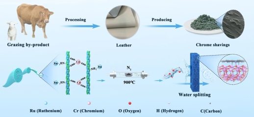 11. 利用含鉻革屑制備含鉻電催化劑,不僅能消除污染,還符合循環(huán)經(jīng)濟(jì)和可持續(xù)發(fā)展的要求。近日,團(tuán)隊(duì)成員韓慶鑫副教授等人利用鉻革屑膠原纖維表面官能團(tuán)在熱解過(guò)程中固定釕原子,制備了一種全pH范圍內(nèi)析氫反應(yīng)的電催化劑,相關(guān)成果發(fā)表在材料科學(xué)領(lǐng)域的領(lǐng)導(dǎo)性期刊Materials Horizons 上(Mater. Horiz., 2024, 23, 17158-17165)。