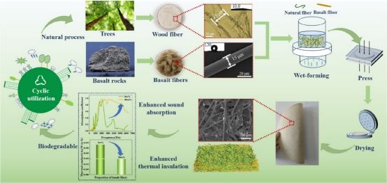 玄武巖材料具有高強(qiáng)度、耐酸堿、耐高低溫等優(yōu)異性能,成為工業(yè)和信息化部發(fā)布的《重點(diǎn)新材料首批次應(yīng)用示范指導(dǎo)目錄(2024年版)》中的“關(guān)鍵戰(zhàn)略基礎(chǔ)材料”之一,廣泛應(yīng)用于航空航天、建筑工程、基礎(chǔ)設(shè)施、交通運(yùn)輸?shù)阮I(lǐng)域。近日,輕工學(xué)院張美云教授團(tuán)隊(duì)宋順喜副教授以玄武巖纖維和玄武巖鱗片為原料,以輕工學(xué)科基礎(chǔ)為背景,圍繞納米片高效制備、先進(jìn)納米絕緣、高級(jí)聲學(xué)吸收、先進(jìn)防火阻燃、高效電磁屏蔽復(fù)合材料開(kāi)展了一系列研究,取得的研究成果相繼發(fā)表在Advanced Science、Journal of Materials Science& Technology等高影響力國(guó)際學(xué)術(shù)期刊上。