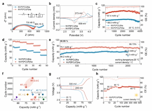 圖3:基于PCUF電解質(zhì)準(zhǔn)固態(tài)鈉金屬扣式電池性能