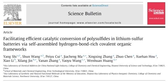 化工學(xué)院黃文歡研究團(tuán)隊在《Science Bulletin》上發(fā)表了一項通過自組裝富含氫鍵COFs促進(jìn)鋰硫電池的高效催化轉(zhuǎn)化研究成果
