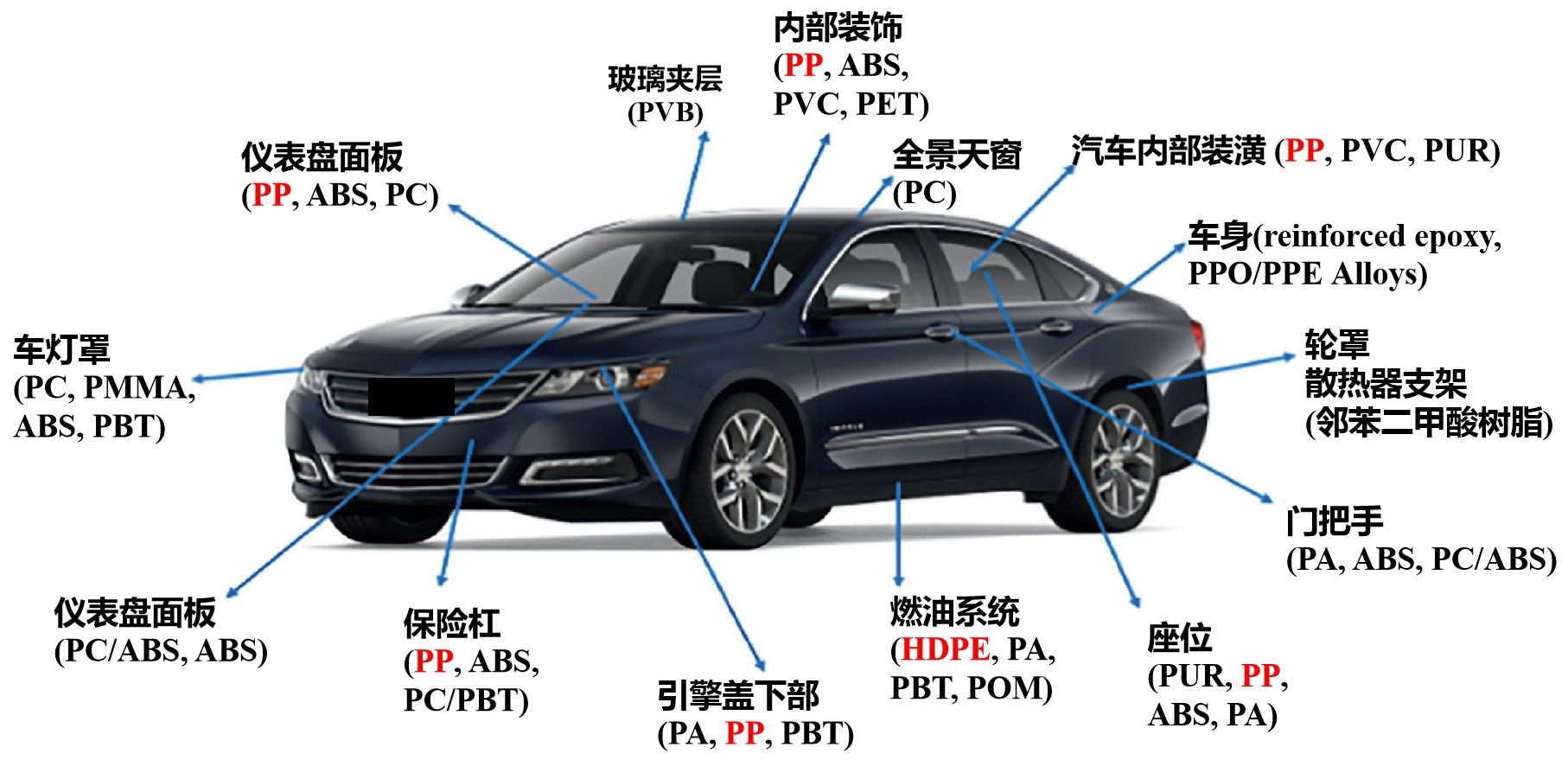 近年來,中國汽車工業(yè)快速發(fā)展,整車出口連續(xù)多年呈增長態(tài)勢,其中2023年全年燃油和新能源汽車分別出口370.7萬輛和120.3萬輛。車用塑料使用量占整車質(zhì)量的10%–15%,聚丙烯、高密度聚乙烯、聚丙乙烯等石油基聚合物(塑料制品)在汽車內(nèi)外裝飾、機械構(gòu)件上已被廣泛使用。為實現(xiàn)2030年碳排放減少55%的目標(biāo),歐盟等國家和地區(qū)開始試運行碳邊界調(diào)整機制,對石油基聚合物(塑料制品)等征收碳邊境調(diào)節(jié)稅(簡稱碳稅),這將對中國汽車整車及塑料制品的出口產(chǎn)生巨大的負(fù)面影響。