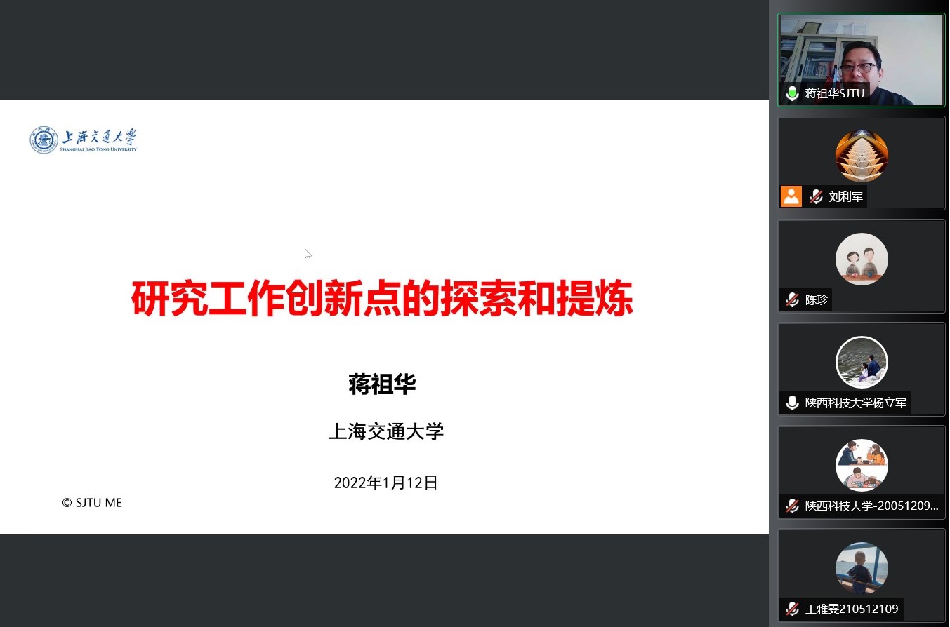 1月12日上午,應(yīng)我校機(jī)電工程學(xué)院邀請(qǐng),上海交通大學(xué)蔣祖華教授做客我校“前沿科學(xué)報(bào)告”,作了題為“研究工作創(chuàng)新點(diǎn)的探索和提煉”的線上學(xué)術(shù)報(bào)告。機(jī)電工程學(xué)院教師及研究生230余人參加了此次報(bào)告會(huì),報(bào)告會(huì)由副院長(zhǎng)楊立軍主持。