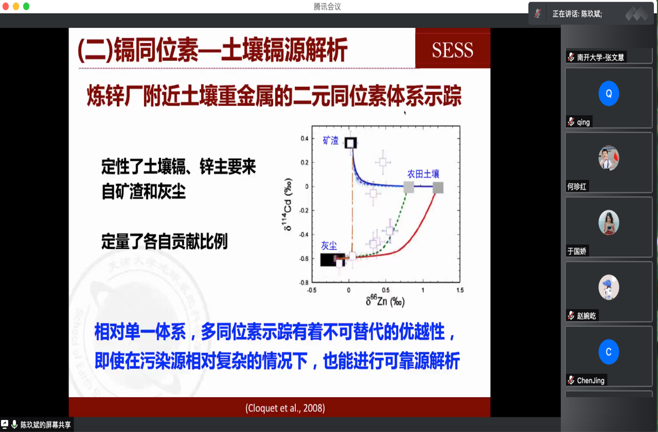 12月21日,受環(huán)境科學(xué)與工程學(xué)院邀請,南方科技大學(xué)傅宗玫教授、天津大學(xué)陳玖斌教授做客我?!扒把乜茖W(xué)報告”,并分別以“大氣有機氣溶膠關(guān)鍵組分的來源、演化及環(huán)境效應(yīng)”“大金屬穩(wěn)定同位素在環(huán)境健康領(lǐng)域的潛在應(yīng)用”為題作了精彩的學(xué)術(shù)報告,環(huán)境學(xué)院及其他兄弟院校、科研院所師生200多人在線參加了會議。環(huán)境學(xué)院陳慶彩教授主持會議。