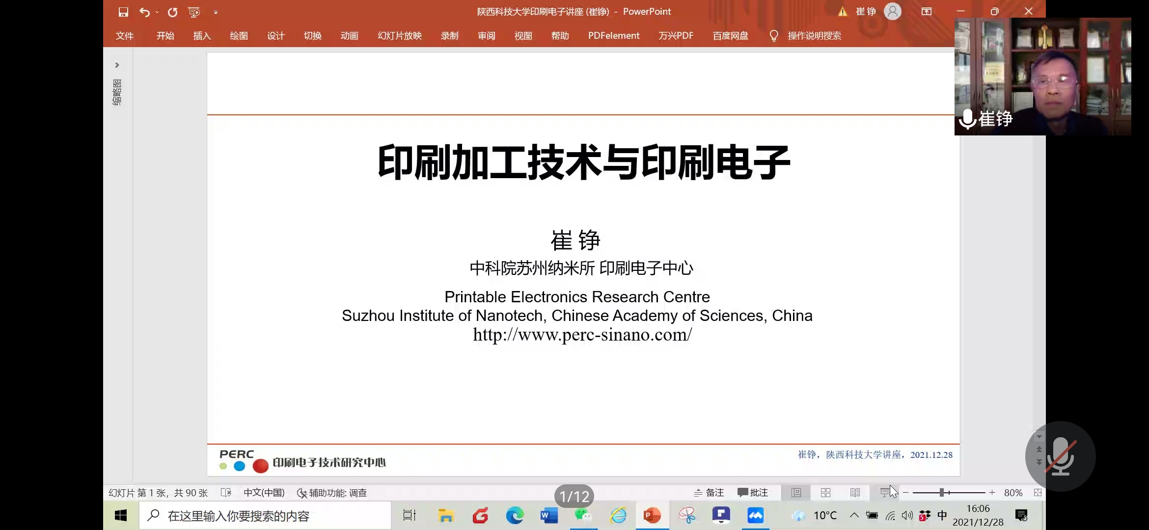 12月28日下午,應(yīng)我校輕工科學(xué)與工程學(xué)院、科技處及前沿院邀請(qǐng),中科院蘇州納米技術(shù)與納米仿生研究所崔錚研究員做客我?!扒把乜茖W(xué)報(bào)告”,作了題為“印刷加工技術(shù)與印刷電子”的線上學(xué)術(shù)報(bào)告。報(bào)告由輕工學(xué)院副院長(zhǎng)劉國(guó)棟主持,學(xué)院部分教師、相關(guān)專業(yè)研究生及本科生聆聽(tīng)了本次報(bào)告。