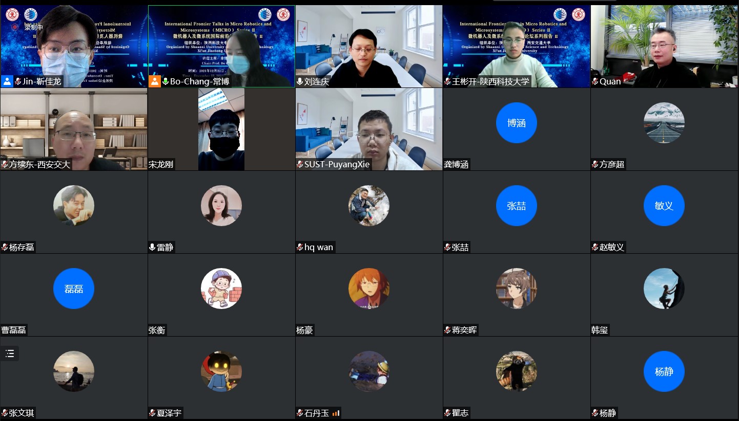 12月22日,應(yīng)機(jī)電工程學(xué)院邀請,中國科學(xué)院沈陽自動化所機(jī)器人學(xué)國家重點實驗室劉連慶研究員,做客我?!拔C(jī)器人及微系統(tǒng)國際前沿論壇系列報告”,作了題為“面向精準(zhǔn)個性化醫(yī)療的微納機(jī)器人技術(shù)”的學(xué)術(shù)報告。報告會采用線上與線下相結(jié)合的方式,由機(jī)電工程學(xué)院常博教授主持,獲得了來自芬蘭阿爾托大學(xué)、西安交通大學(xué)、蘇州大學(xué)等高等學(xué)校眾多學(xué)者的關(guān)注,校內(nèi)外50多位學(xué)者、研究生聆聽了本次報告。