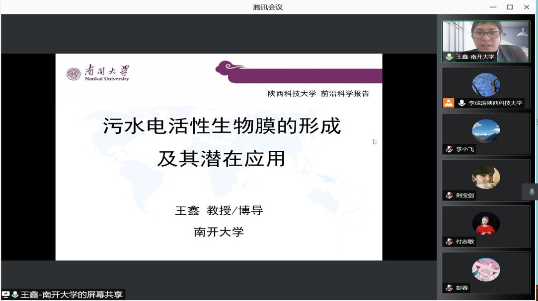 12月10日,受環(huán)境科學(xué)與工程學(xué)院邀請,南開大學(xué)王鑫教授做客我?!扒把乜茖W(xué)報告”,并以“污水電活性生物膜的形成及其潛在應(yīng)用”為題作了一場精彩的學(xué)術(shù)報告,環(huán)境學(xué)院師生及其他兄弟院校、科研院所師生170多人在線參加了會議。環(huán)境學(xué)院副院長李成濤主持會議。
