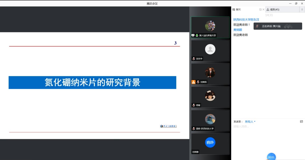 12月11日下午,應(yīng)材料科學(xué)與工程學(xué)院邀請,上海交通大學(xué)黃興溢教授做客我?!扒把乜茖W(xué)報告”論壇,作了題為“二維氮化硼納米片的制備及應(yīng)用”的學(xué)術(shù)報告。本次報告由材料學(xué)院劉曉旭教授主持,學(xué)院相關(guān)教師和學(xué)生參加了本次報告會,因疫情影響,本次報告采取線上的方式進(jìn)行。