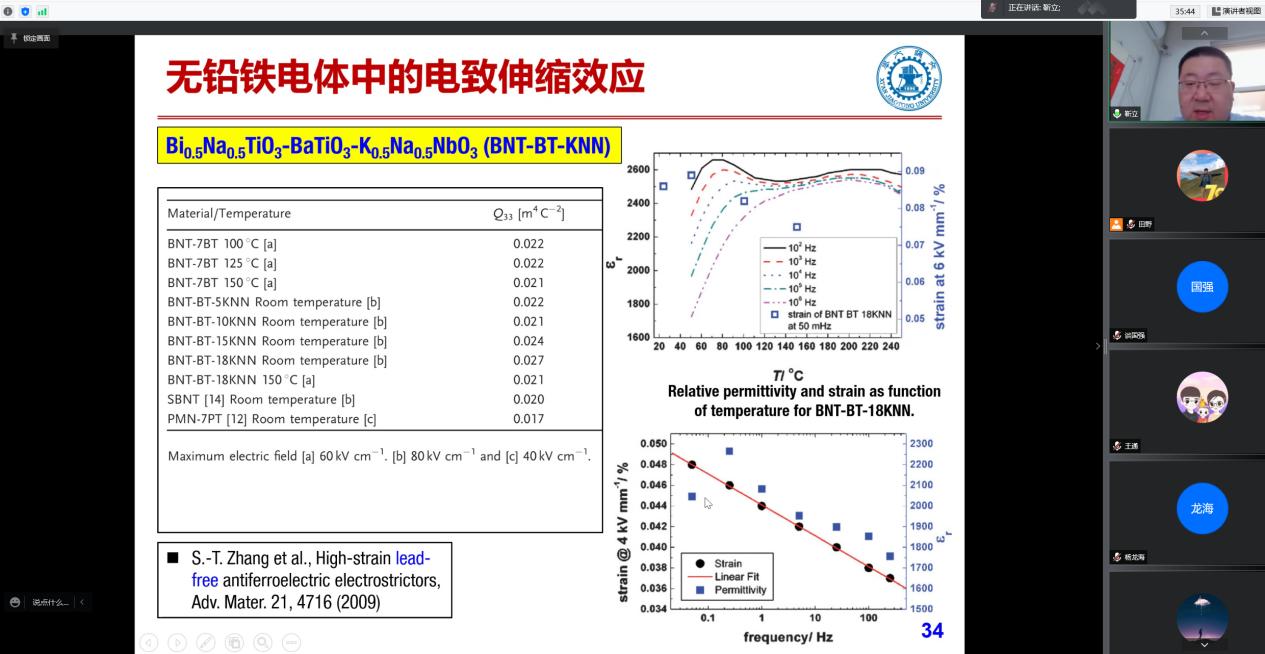 3月28日,應(yīng)材料科學(xué)與工程學(xué)院、科技處和前沿院邀請,西安交通大學(xué)電信學(xué)部主任助理、博士生導(dǎo)師靳立教授來我校,作了題為“無鉛鐵電陶瓷中的電致伸縮效應(yīng)和超高應(yīng)變”的前沿科學(xué)報(bào)告。報(bào)告采用線上形式舉行,報(bào)告由材料學(xué)院院長朱建鋒教授主持。