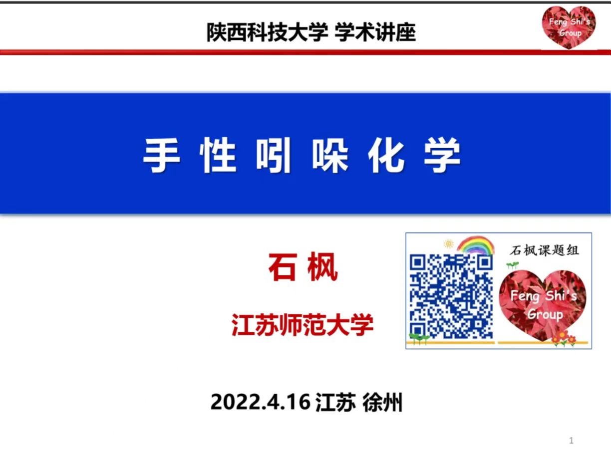 石楓教授從構(gòu)建手性雜環(huán)骨架、手性吲哚骨架的意義出發(fā),分析了手性吲哚化學(xué)的研究現(xiàn)狀,提出了實(shí)現(xiàn)新型手性吲哚骨架的高效、高選擇性構(gòu)建的思路和策略。石教授以四類(lèi)吲哚平臺(tái)分子的設(shè)計(jì)和應(yīng)用為例闡明了研究策略,即通過(guò)引入特定官能團(tuán)、設(shè)計(jì)催化不對(duì)稱(chēng)反應(yīng),實(shí)現(xiàn)新型骨架的構(gòu)建,在此過(guò)程中也探究了反應(yīng)機(jī)制和催化模式,并對(duì)其生物學(xué)活性進(jìn)行研究。