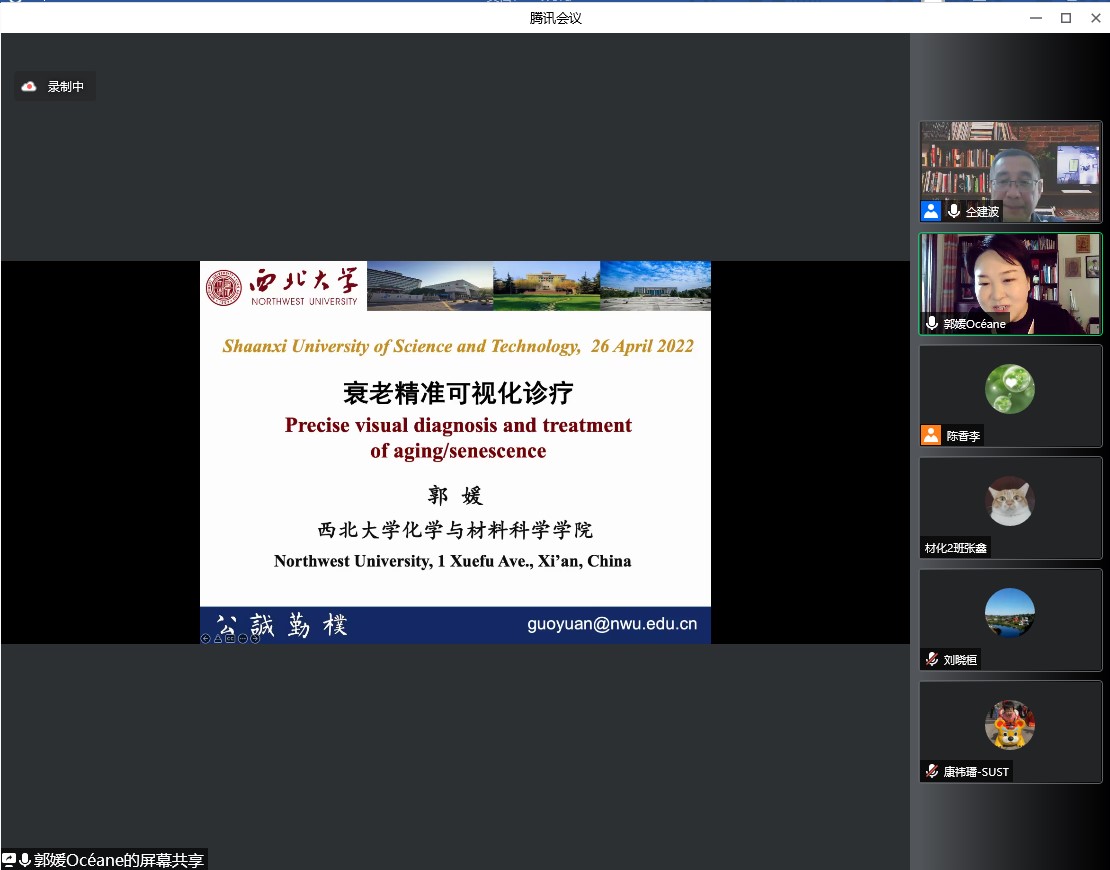 郭媛教授從抗衰老藥物研發(fā)面臨的瓶頸出發(fā),聚焦“衰老精準(zhǔn)診斷與治療”前沿,介紹了精準(zhǔn)診斷和Senolysis干預(yù)兩方面的研究工作。重點(diǎn)介紹了第一代種屬特異在評價健康衰老應(yīng)激態(tài)識別和排除內(nèi)源干擾二維識別衰老方面的研究工作,實(shí)現(xiàn)了高“時、空”分辨衰老精準(zhǔn)可視化診斷與干預(yù)。